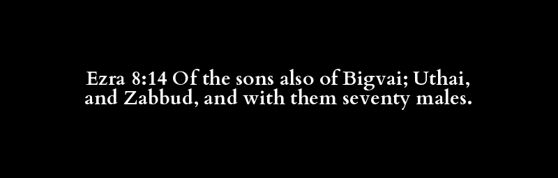 Ezra 8:14 Of the sons also of Bigvai; Uthai, and Zabbud, and with them seventy males.