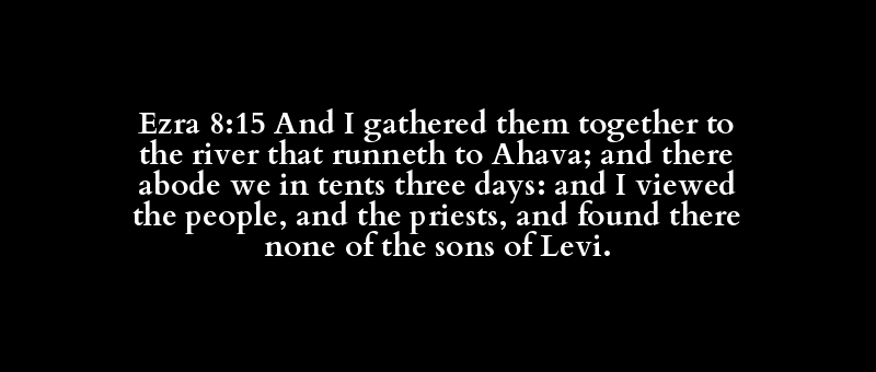 Ezra 8:15 And I gathered them together to the river that runneth to Ahava; and there abode we in tents three days: and I viewed the people, and the priests, and found there none of the sons of Levi.