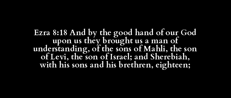 Ezra 8:18 And by the good hand of our God upon us they brought us a man of understanding, of the sons of Mahli, the son of Levi, the son of Israel; and Sherebiah, with his sons and his brethren, eighteen;