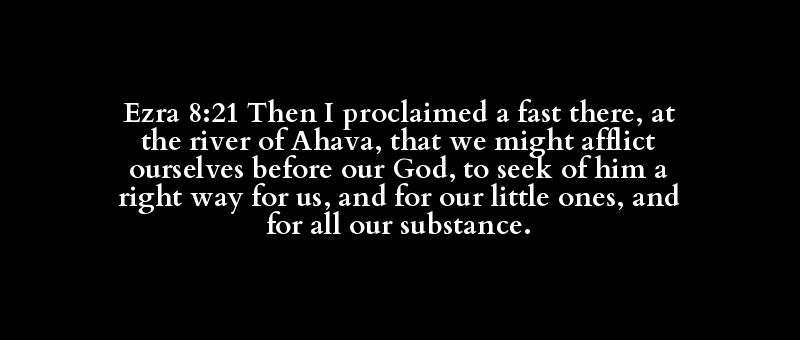 Ezra 8:21 Then I proclaimed a fast there, at the river of Ahava, that we might afflict ourselves before our God, to seek of him a right way for us, and for our little ones, and for all our substance.