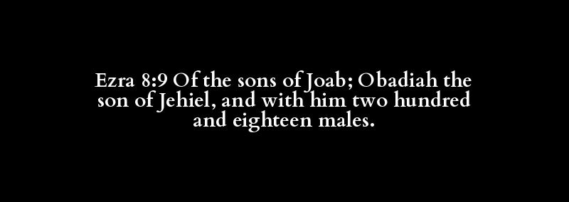 Ezra 8:9 Of the sons of Joab; Obadiah the son of Jehiel, and with him two hundred and eighteen males.