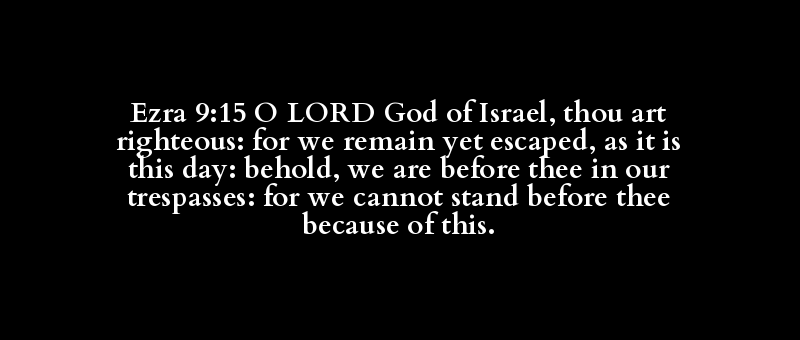 Ezra 9:15 O LORD God of Israel, thou art righteous: for we remain yet escaped, as it is this day: behold, we are before thee in our trespasses: for we cannot stand before thee because of this.