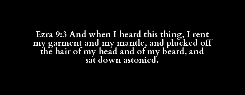 Ezra 9:3 And when I heard this thing, I rent my garment and my mantle, and plucked off the hair of my head and of my beard, and sat down astonied.