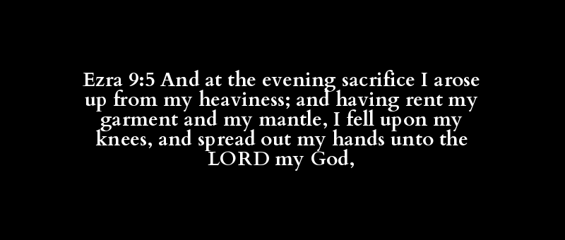 Ezra 9:5 And at the evening sacrifice I arose up from my heaviness; and having rent my garment and my mantle, I fell upon my knees, and spread out my hands unto the LORD my God,