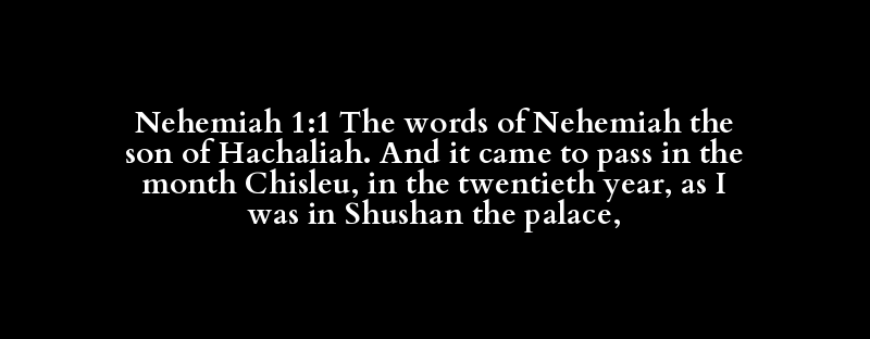 Nehemiah 1:1 The words of Nehemiah the son of Hachaliah. And it came to pass in the month Chisleu, in the twentieth year, as I was in Shushan the palace,