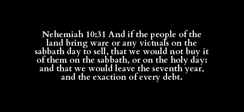 Nehemiah 10:31 And if the people of the land bring ware or any victuals on the sabbath day to sell, that we would not buy it of them on the sabbath, or on the holy day: and that we would leave the seventh year, and the exaction of every debt.