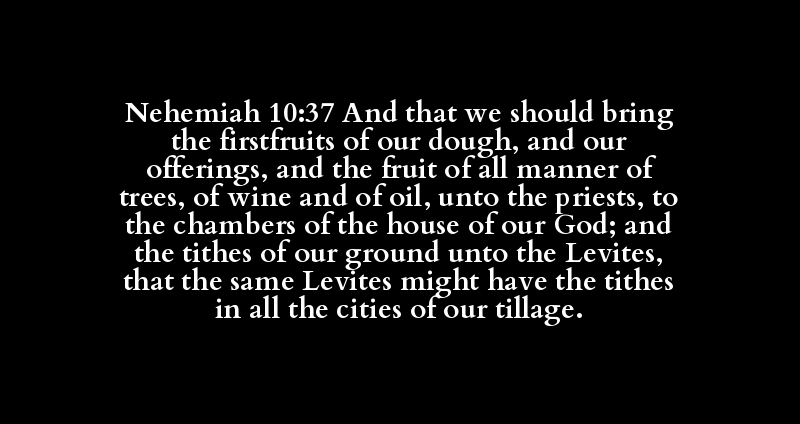 Nehemiah 10:37 And that we should bring the firstfruits of our dough, and our offerings, and the fruit of all manner of trees, of wine and of oil, unto the priests, to the chambers of the house of our God; and the tithes of our ground unto the Levites, that the same Levites might have the tithes in all the cities of our tillage.