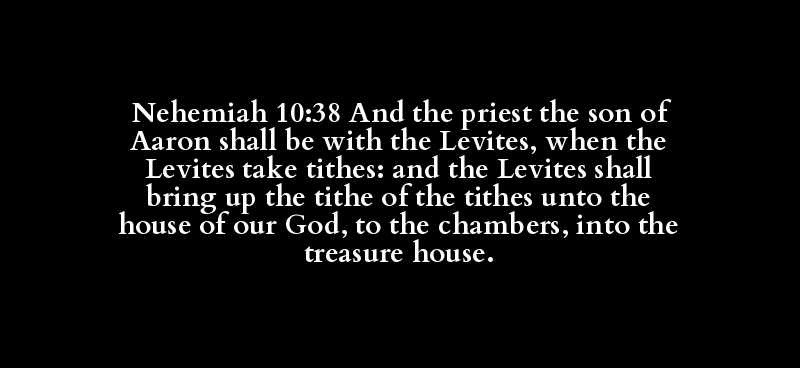 Nehemiah 10:38 And the priest the son of Aaron shall be with the Levites, when the Levites take tithes: and the Levites shall bring up the tithe of the tithes unto the house of our God, to the chambers, into the treasure house.