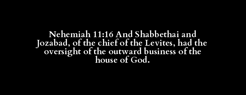 Nehemiah 11:16 And Shabbethai and Jozabad, of the chief of the Levites, had the oversight of the outward business of the house of God.