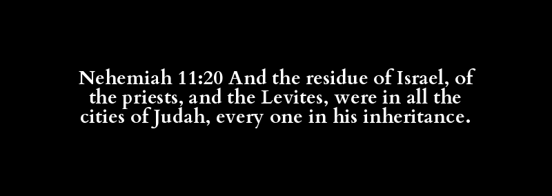 Nehemiah 11:20 And the residue of Israel, of the priests, and the Levites, were in all the cities of Judah, every one in his inheritance.