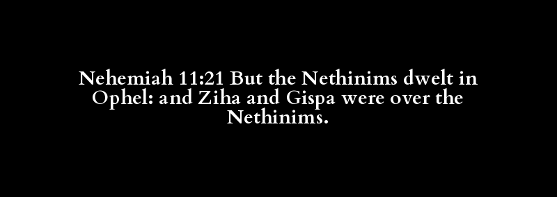 Nehemiah 11:21 But the Nethinims dwelt in Ophel: and Ziha and Gispa were over the Nethinims.