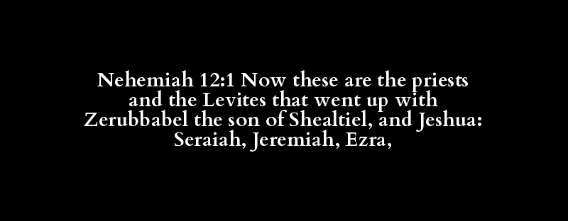 Nehemiah 12:1 Now these are the priests and the Levites that went up with Zerubbabel the son of Shealtiel, and Jeshua: Seraiah, Jeremiah, Ezra,