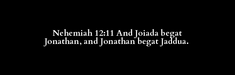 Nehemiah 12:11 And Joiada begat Jonathan, and Jonathan begat Jaddua.