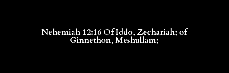 Nehemiah 12:16 Of Iddo, Zechariah; of Ginnethon, Meshullam;