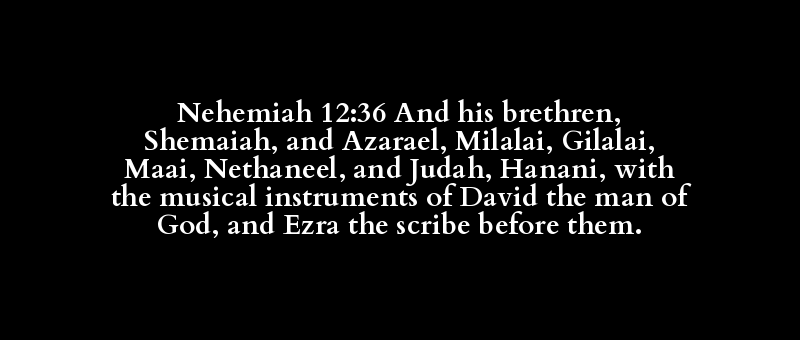 Nehemiah 12:36 And his brethren, Shemaiah, and Azarael, Milalai, Gilalai, Maai, Nethaneel, and Judah, Hanani, with the musical instruments of David the man of God, and Ezra the scribe before them.