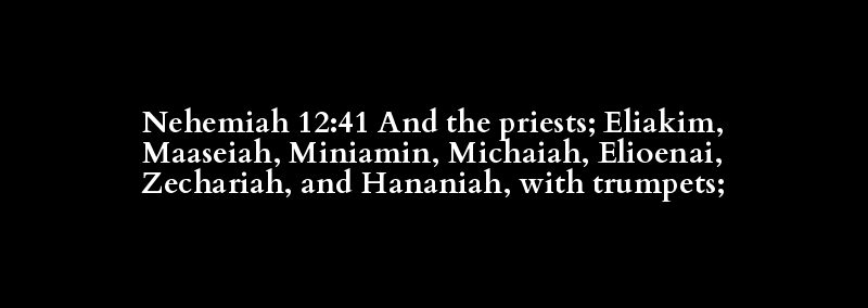 Nehemiah 12:41 And the priests; Eliakim, Maaseiah, Miniamin, Michaiah, Elioenai, Zechariah, and Hananiah, with trumpets;