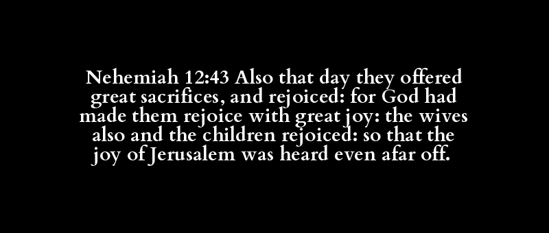Nehemiah 12:43 Also that day they offered great sacrifices, and rejoiced: for God had made them rejoice with great joy: the wives also and the children rejoiced: so that the joy of Jerusalem was heard even afar off.