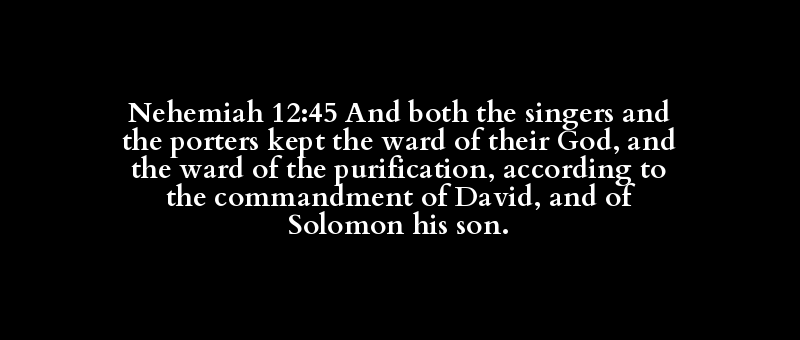 Nehemiah 12:45 And both the singers and the porters kept the ward of their God, and the ward of the purification, according to the commandment of David, and of Solomon his son.