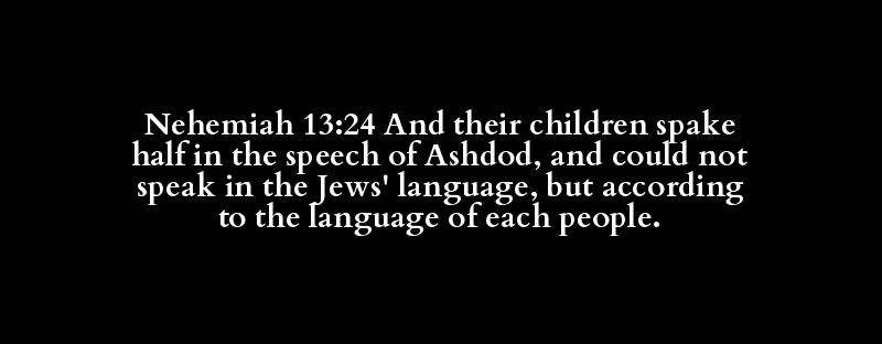 Nehemiah 13:24 And their children spake half in the speech of Ashdod, and could not speak in the Jews' language, but according to the language of each people.