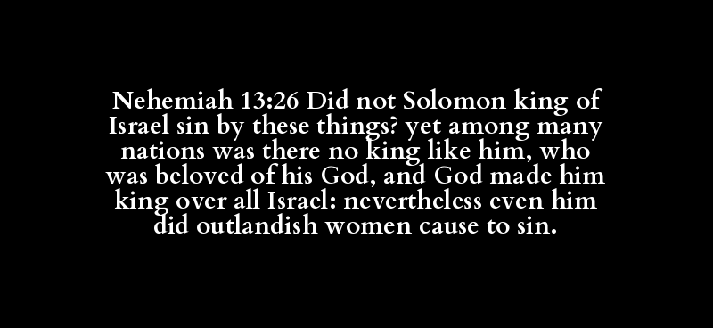 Nehemiah 13:26 Did not Solomon king of Israel sin by these things? yet among many nations was there no king like him, who was beloved of his God, and God made him king over all Israel: nevertheless even him did outlandish women cause to sin.
