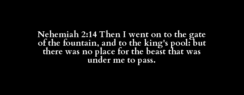 Nehemiah 2:14 Then I went on to the gate of the fountain, and to the king's pool: but there was no place for the beast that was under me to pass.