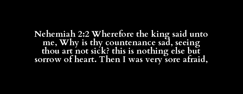 Nehemiah 2:2 Wherefore the king said unto me, Why is thy countenance sad, seeing thou art not sick? this is nothing else but sorrow of heart. Then I was very sore afraid,