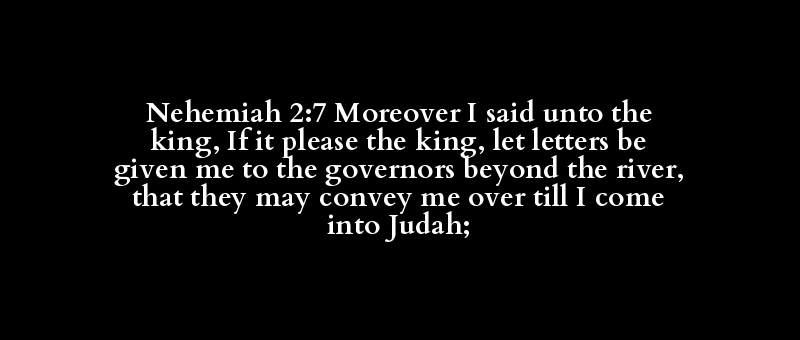 Nehemiah 2:7 Moreover I said unto the king, If it please the king, let letters be given me to the governors beyond the river, that they may convey me over till I come into Judah;