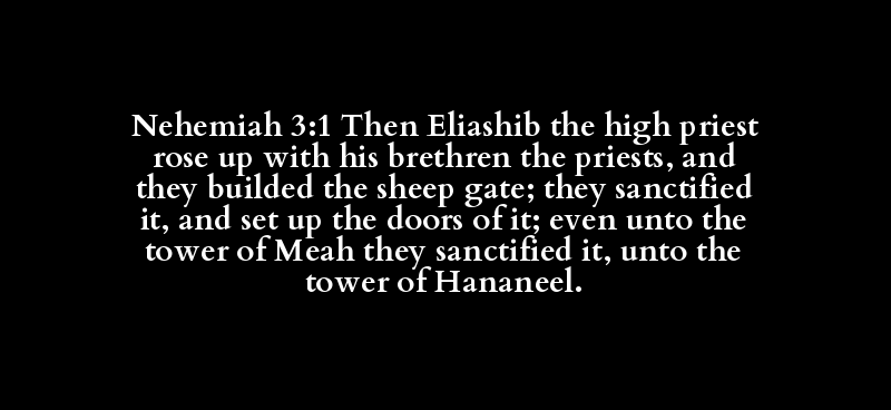 Nehemiah 3:1 Then Eliashib the high priest rose up with his brethren the priests, and they builded the sheep gate; they sanctified it, and set up the doors of it; even unto the tower of Meah they sanctified it, unto the tower of Hananeel.