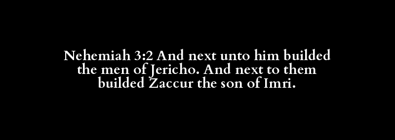 Nehemiah 3:2 And next unto him builded the men of Jericho. And next to them builded Zaccur the son of Imri.