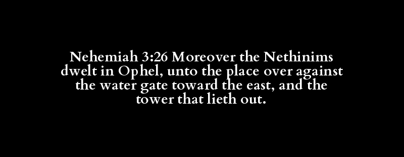Nehemiah 3:26 Moreover the Nethinims dwelt in Ophel, unto the place over against the water gate toward the east, and the tower that lieth out.