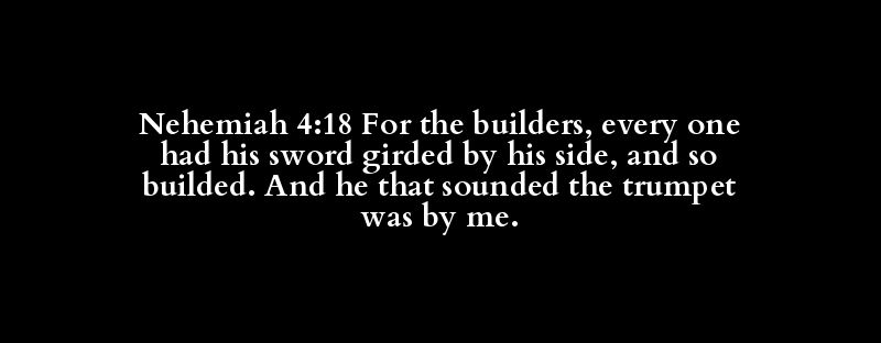 Nehemiah 4:18 For the builders, every one had his sword girded by his side, and so builded. And he that sounded the trumpet was by me.
