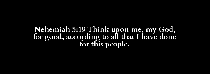 Nehemiah 5:19 Think upon me, my God, for good, according to all that I have done for this people.