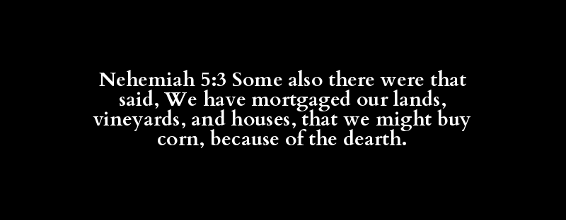 Nehemiah 5:3 Some also there were that said, We have mortgaged our lands, vineyards, and houses, that we might buy corn, because of the dearth.