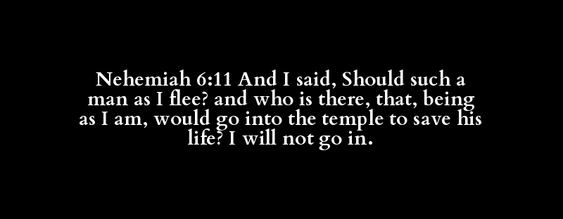 Nehemiah 6:11 And I said, Should such a man as I flee? and who is there, that, being as I am, would go into the temple to save his life? I will not go in.