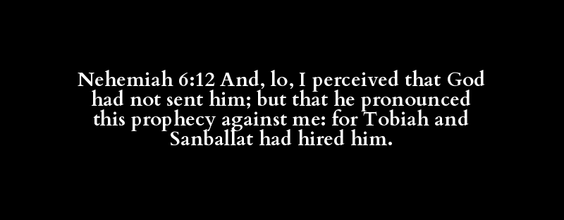 Nehemiah 6:12 And, lo, I perceived that God had not sent him; but that he pronounced this prophecy against me: for Tobiah and Sanballat had hired him.