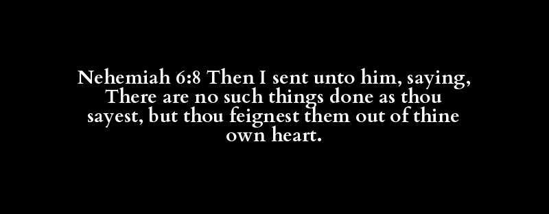 Nehemiah 6:8 Then I sent unto him, saying, There are no such things done as thou sayest, but thou feignest them out of thine own heart.