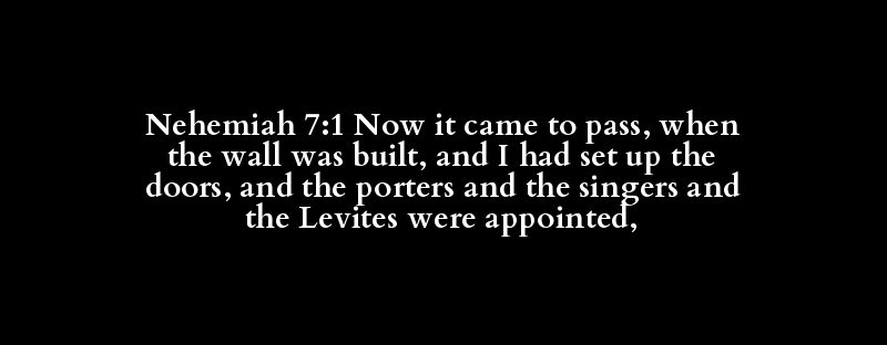 Nehemiah 7:1 Now it came to pass, when the wall was built, and I had set up the doors, and the porters and the singers and the Levites were appointed,