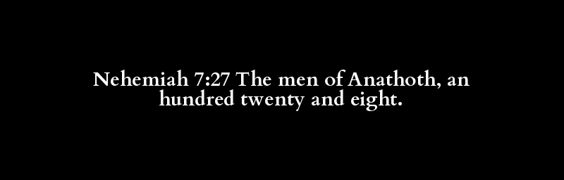 Nehemiah 7:27 The men of Anathoth, an hundred twenty and eight.