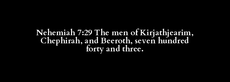 Nehemiah 7:29 The men of Kirjathjearim, Chephirah, and Beeroth, seven hundred forty and three.