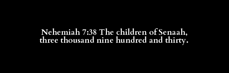 Nehemiah 7:38 The children of Senaah, three thousand nine hundred and thirty.
