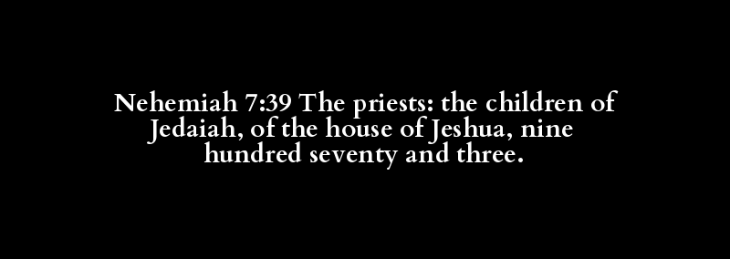 Nehemiah 7:39 The priests: the children of Jedaiah, of the house of Jeshua, nine hundred seventy and three.