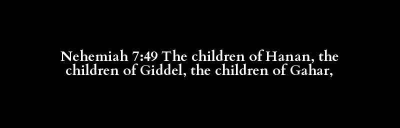 Nehemiah 7:49 The children of Hanan, the children of Giddel, the children of Gahar,