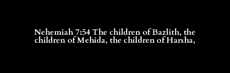 Nehemiah 7:54 The children of Bazlith, the children of Mehida, the children of Harsha,