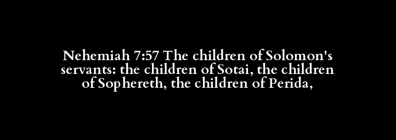 Nehemiah 7:57 The children of Solomon's servants: the children of Sotai, the children of Sophereth, the children of Perida,