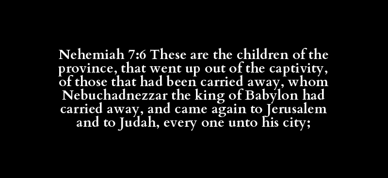 Nehemiah 7:6 These are the children of the province, that went up out of the captivity, of those that had been carried away, whom Nebuchadnezzar the king of Babylon had carried away, and came again to Jerusalem and to Judah, every one unto his city;