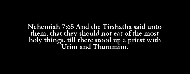Nehemiah 7:65 And the Tirshatha said unto them, that they should not eat of the most holy things, till there stood up a priest with Urim and Thummim.