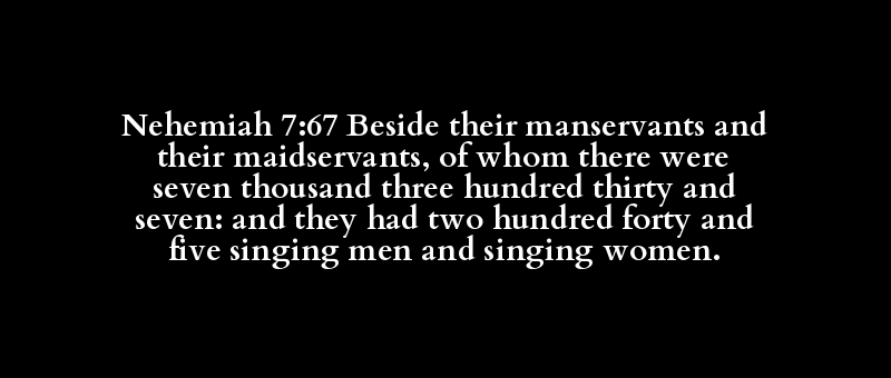 | עֶבֶד | אָמָה | שֶׁבַע | אֶלֶף | שָׁלוֹשׁ | מֵאָה | שְׁלוֹשִׁים | שֶׁבַע | מֵאָה | אַרְבָּעִים | חָמֵשׁ | שִׁיר | שִׁיר |