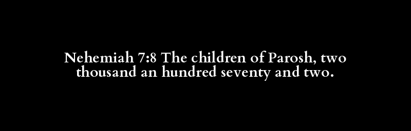 Nehemiah 7:8 The children of Parosh, two thousand an hundred seventy and two.