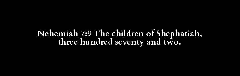 Nehemiah 7:9 The children of Shephatiah, three hundred seventy and two.