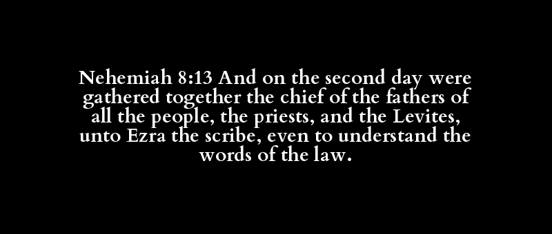 Nehemiah 8:13 And on the second day were gathered together the chief of the fathers of all the people, the priests, and the Levites, unto Ezra the scribe, even to understand the words of the law.